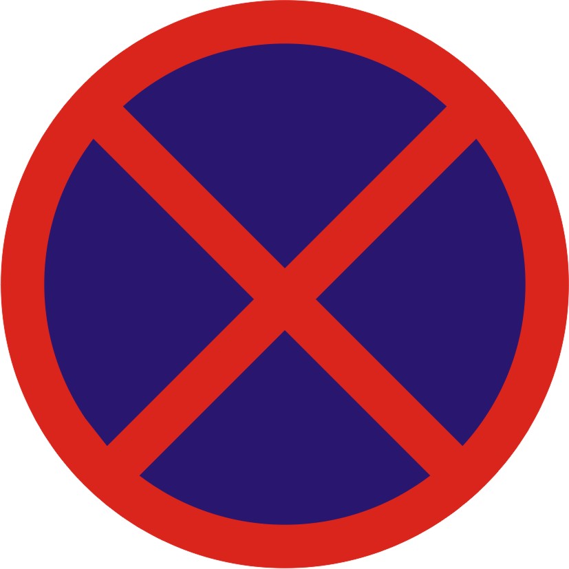Indicação da proibição permanente de parar ou estacionar quaisquer veículos."